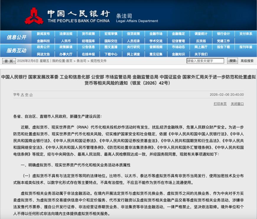 央行等八部门:任何单位和个人投资虚拟货币、现实世界资产代币及相关金融产品 损失由其自行承担