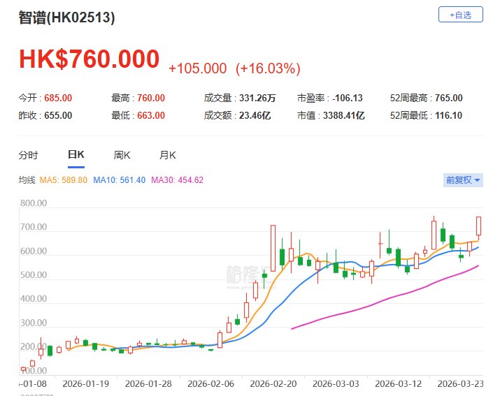 大模型“坐上”迈巴赫 智谱大涨16.03%股价创收盘新高 上市不到3个月已累涨5.54倍!
