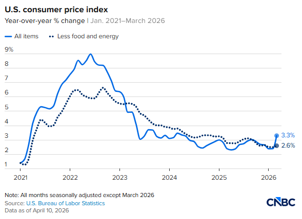 通胀警报再起!美国CPI强势反弹至3.3% 油价、机票、食品全线上涨