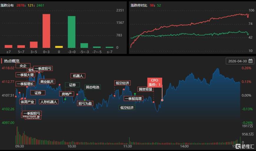 1. 医药龙头爆发:药明康德一季度营收首破百亿大关,A股涨停、H股大涨超17%,带动CXO板块全线提振。