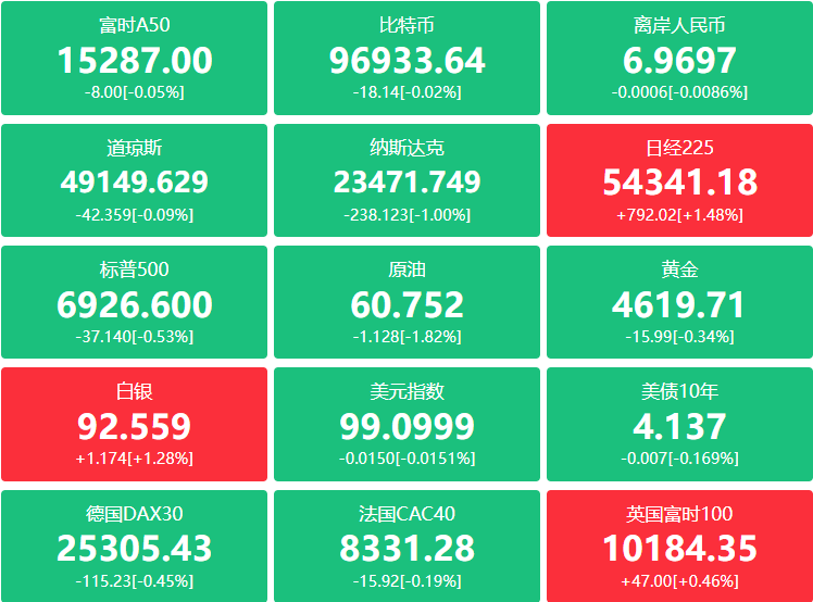 美股震荡加剧!科技七巨头集体下跌 ,银行股遭财报与政策双重打击,白银狂飙破93美元创纪录,原油坐 "过山车"