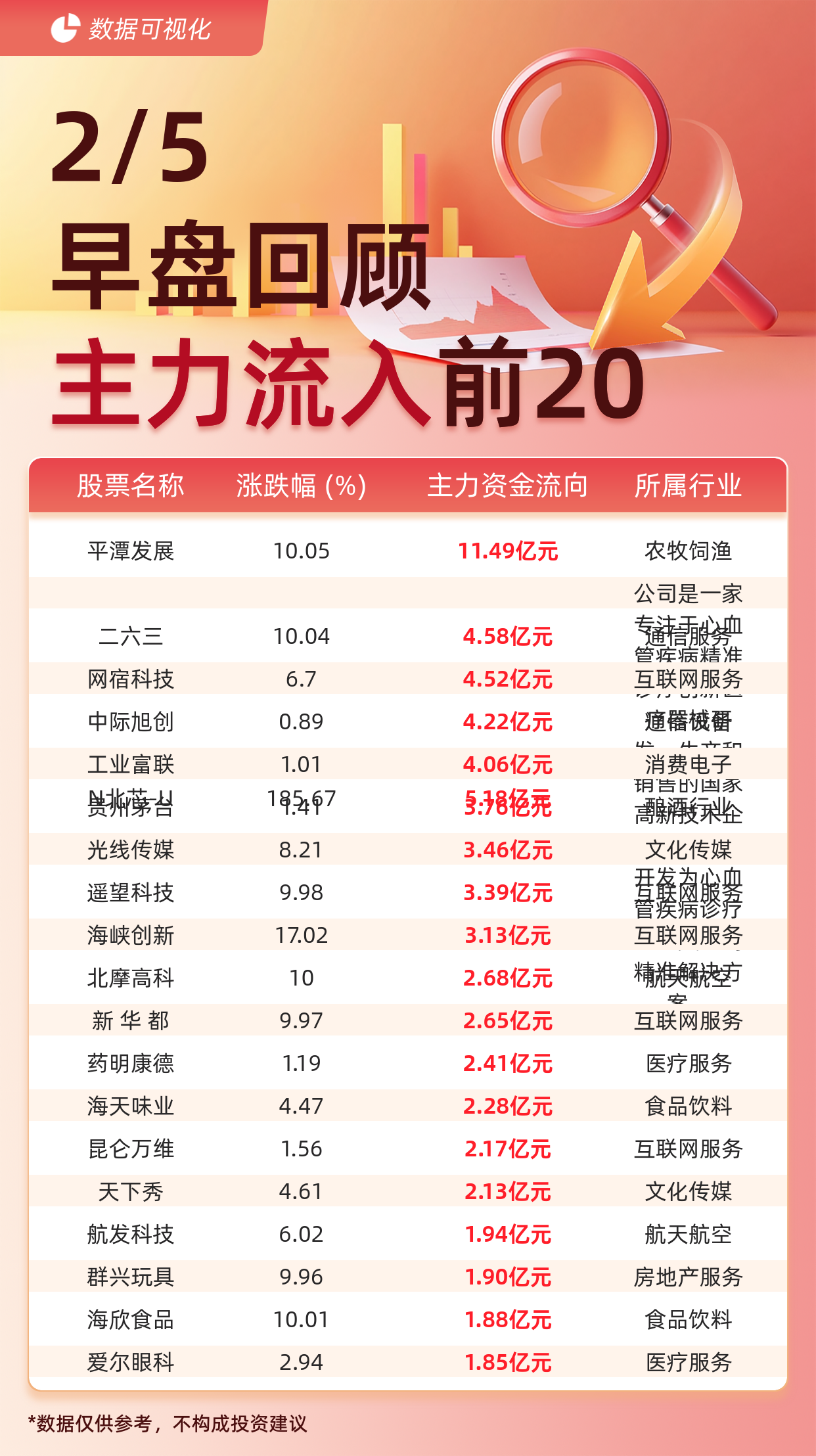 【主力个股资金流出前20:紫金矿业流出19.31亿元、特变电工流出12.95亿元】据交易所数据显示,截至2月5日午间收盘,主力资金流出前20的股票分别为:紫金矿业(-19.31亿元)、特变电工(-12.95亿元)、新易盛(-12.84亿元)、洛阳钼业(-10.00亿元)、隆基绿能(-9.51亿元)、金风科技(-8.95亿元)、山子高科(-8.46亿元)、航天发展(-8.31亿元)、TCL中环(-7.26亿元)、蓝色光标(-7.14亿元)、阳光电源(-6.75亿元)、兴业银锡(-6.38亿元)、中芯国际(-6.32亿元)、三花智控(-6.07亿元)、中国西电(-5.92亿元)、英维克(-5.74亿元)、江西铜业(-5.65亿元)、北方稀土(-5.47亿元)、中金黄金(-5.26亿元)、岩山科技(-5.12亿元)。
