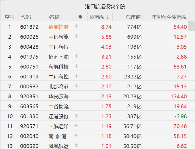 BDI指数12连升,港口航运股走强,招商轮船一度触及涨停创历史新高
