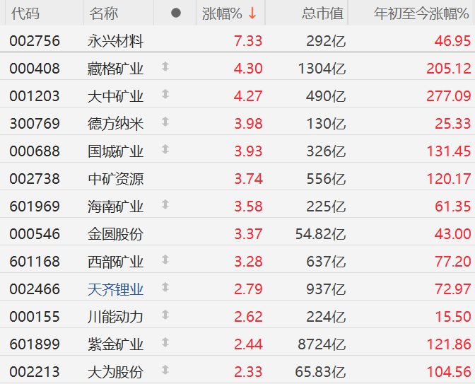 锂矿股走强,藏格矿业、中矿资源创历史新高