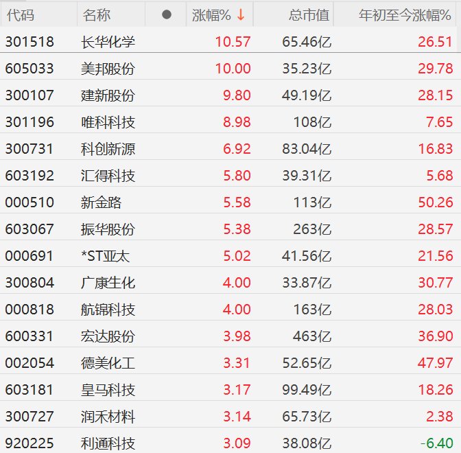 化工股集体走强,长华化学涨超10%