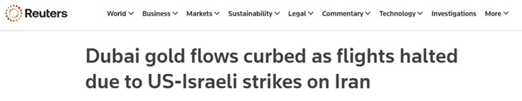 伊朗冲突影响黄金交易!由于美以袭击伊朗导致航班停飞 迪拜黄金流通受到抑制