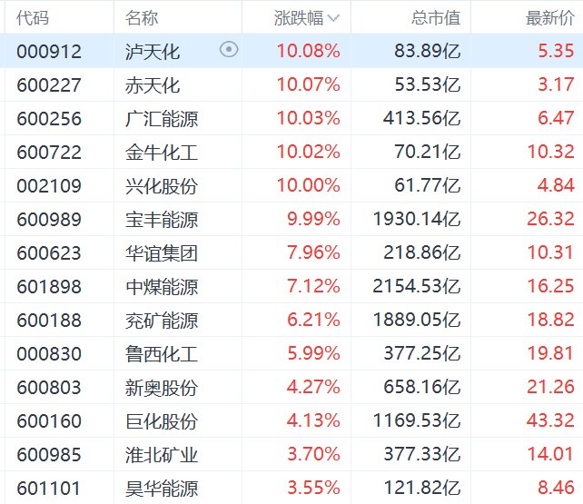 中东局势紧张,甲醇概念股全线上涨,泸天化、赤天化等多股涨停