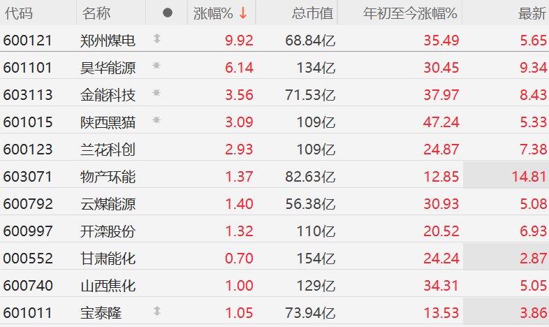 煤炭股多数上涨,郑州煤电涨停,昊华能源涨超6%