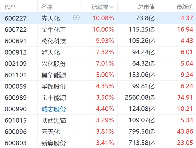 甲醇价格创2022年10月以来新高,相关概念股走强,赤天化、金牛化工等涨停