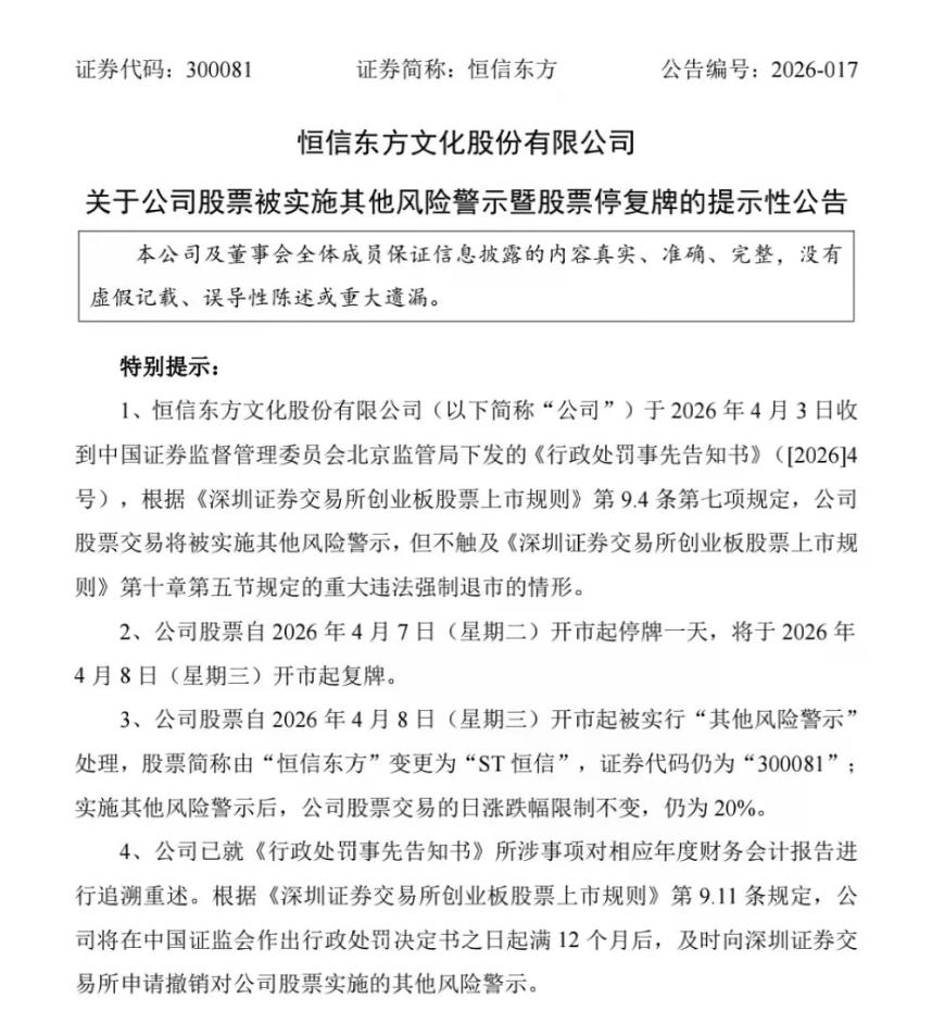 300081、002598,4月8日起双双被“ST”