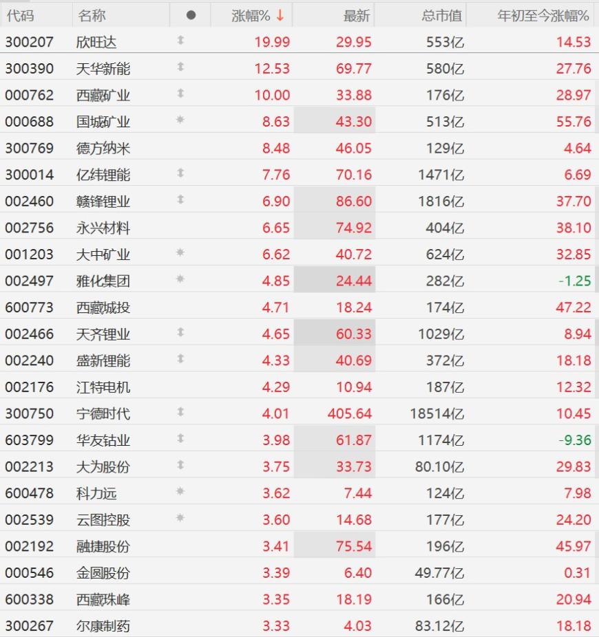 锂矿股全线走强,天齐锂业、宁德时代涨超4%,据报江西宜春四家锂矿或于5月停产换证