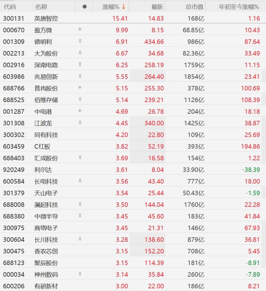 今日十大热股:光通信板块霸榜,长飞光纤、特发信息、光迅科技领衔,汇源通信5连板创新高