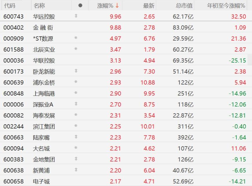 房地产股普涨,华远控股、金融街涨停