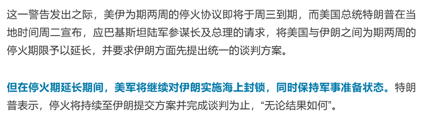 据称特朗普将再给伊朗3至5天停火时间