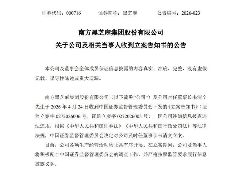 突发!000892,603363,000909被立案调查