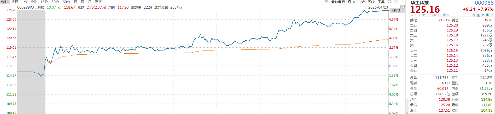 华工科技大涨7%重回125元关键关口,一季报暴增超50%,1.6T光模块出货量爆发