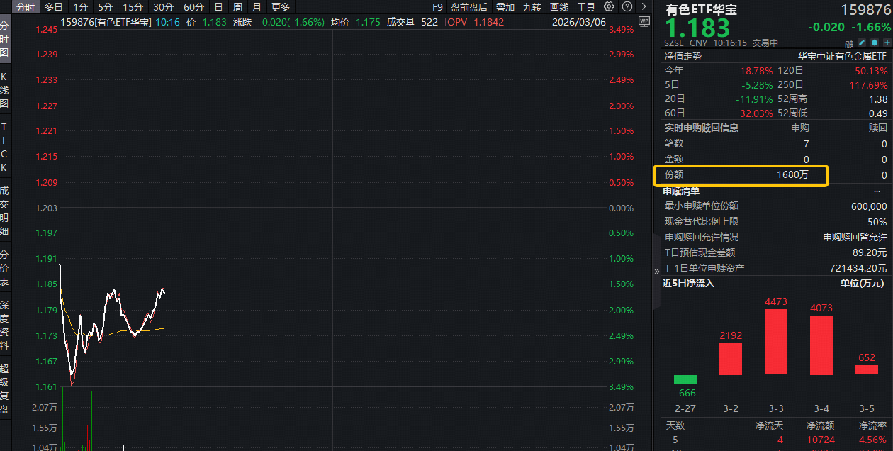 ETF盘中资讯|资金大举加仓!HALO交易核心受益赛道,有色ETF(159876)获实时净申购1680万份,此前4日狂揽1.14亿元!