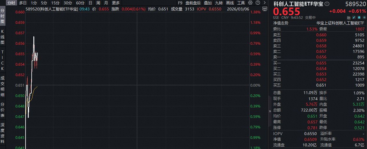 ETF盘中资讯|AI重磅!OpenAI发布大模型GPT-5.4,科创人工智能ETF(589520)逆市摸高0.92%