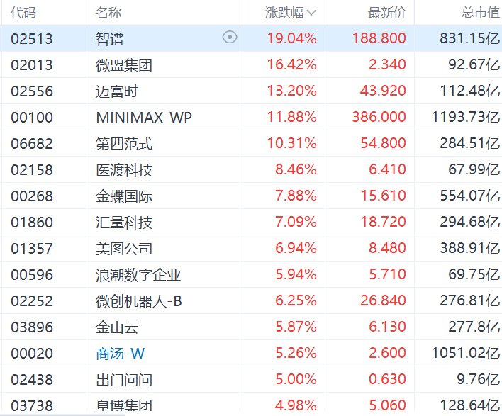 港股AI应用股集体飙升,微盟集团涨超16%,迈富时涨超13%