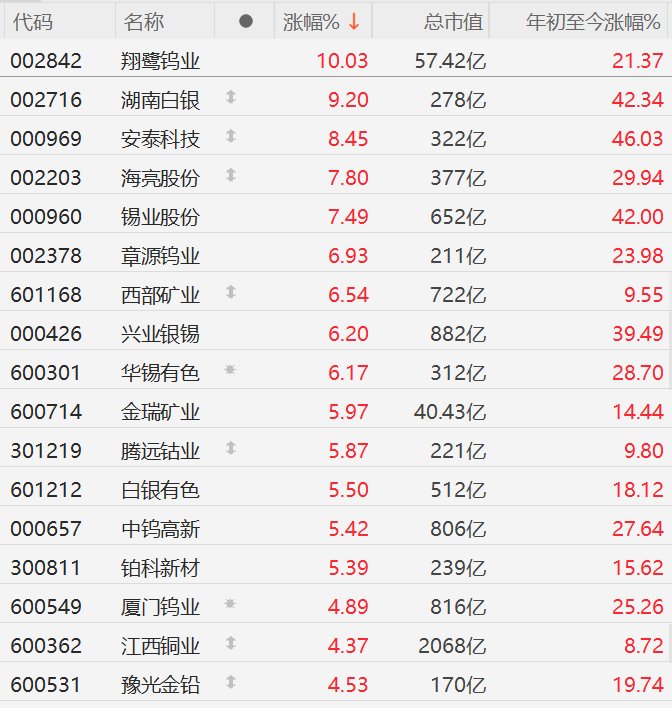 钨价破110万创历史新高!锡价同步飙升,小金属概念股集体涨停