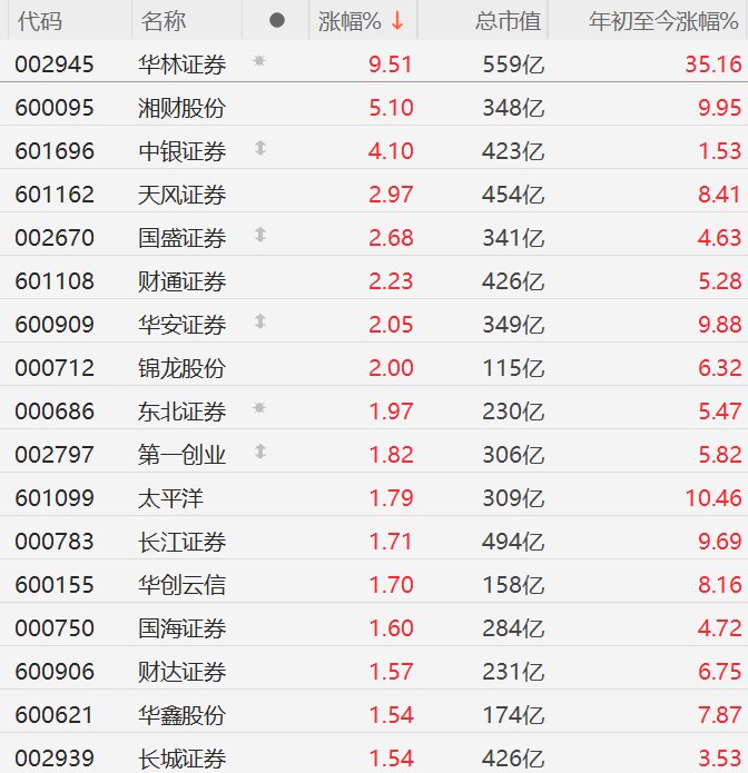 A股券商股集体上涨,华林证券逼近涨停,湘财股份涨超5%