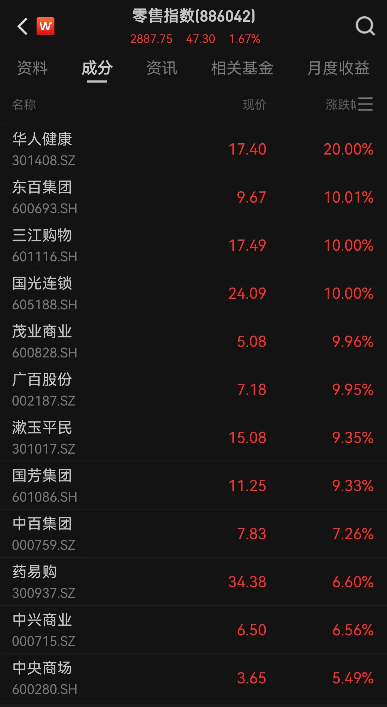 【零售第一线】零售股尾盘拉升!六部门发布促消费重磅实施方案,东百集团、三江购物、国光连锁、茂业商业、广百股份封板