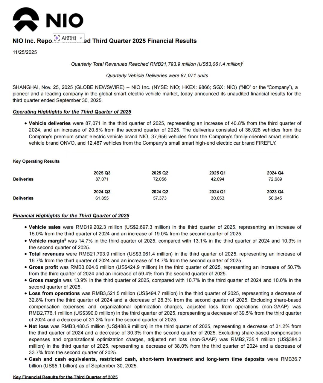 蔚来三季度财报出炉,李斌坚持四季度盈利目标不变