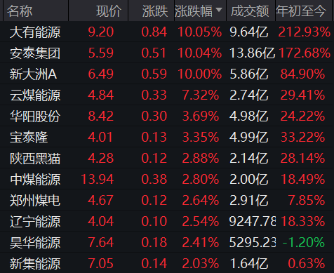 煤炭板块逆势拉升,大有能源、安泰集团、新大洲A涨停