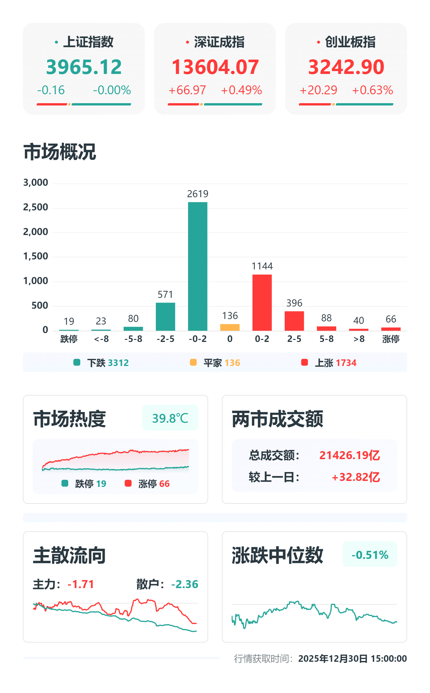 A股特别提示(12-30):A股九连阳分化加剧,沪指微涨创连阳纪录,深市回调,商业航天领涨、锂电池重挫