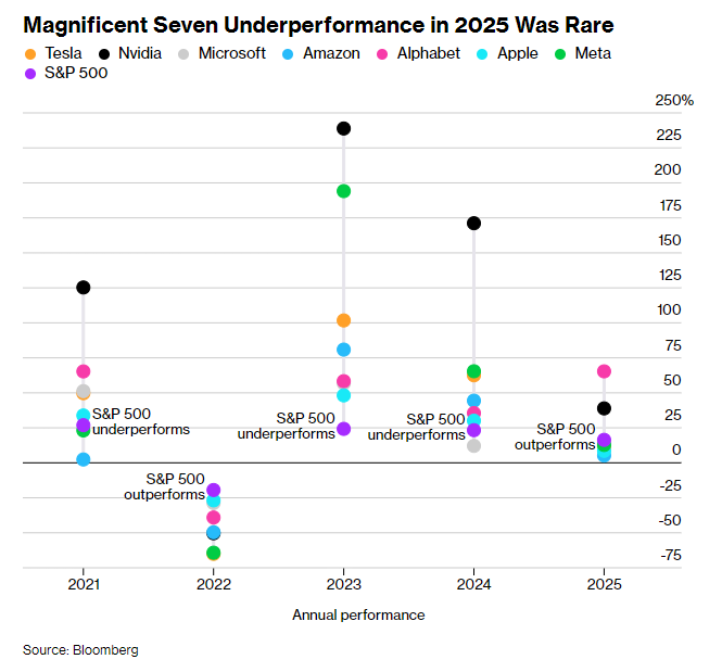 闭眼买入的时代结束了!美股七巨头抱团策略失灵 华尔街喊话:2026年得“拆开来买”