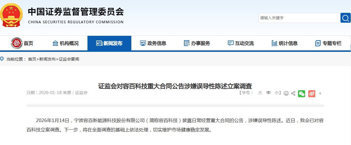 证监会对容百科技重大合同公告涉嫌误导性陈述立案调查
