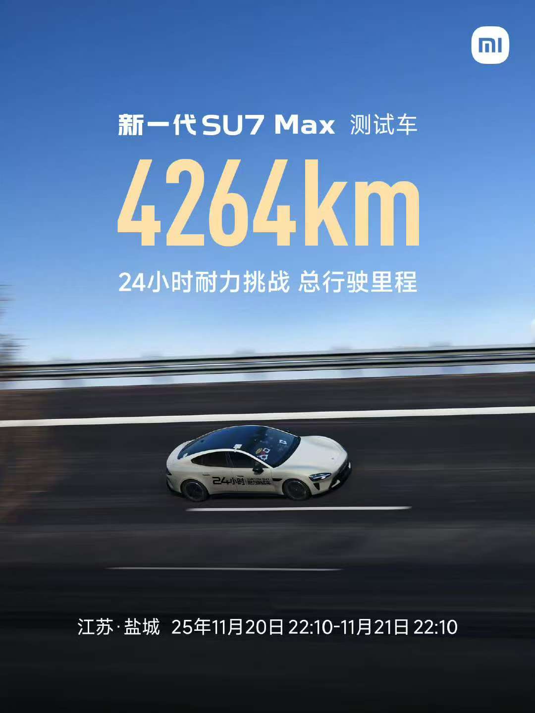 24小时行驶4264km,小米公布新一代SU7 Max测试结果
