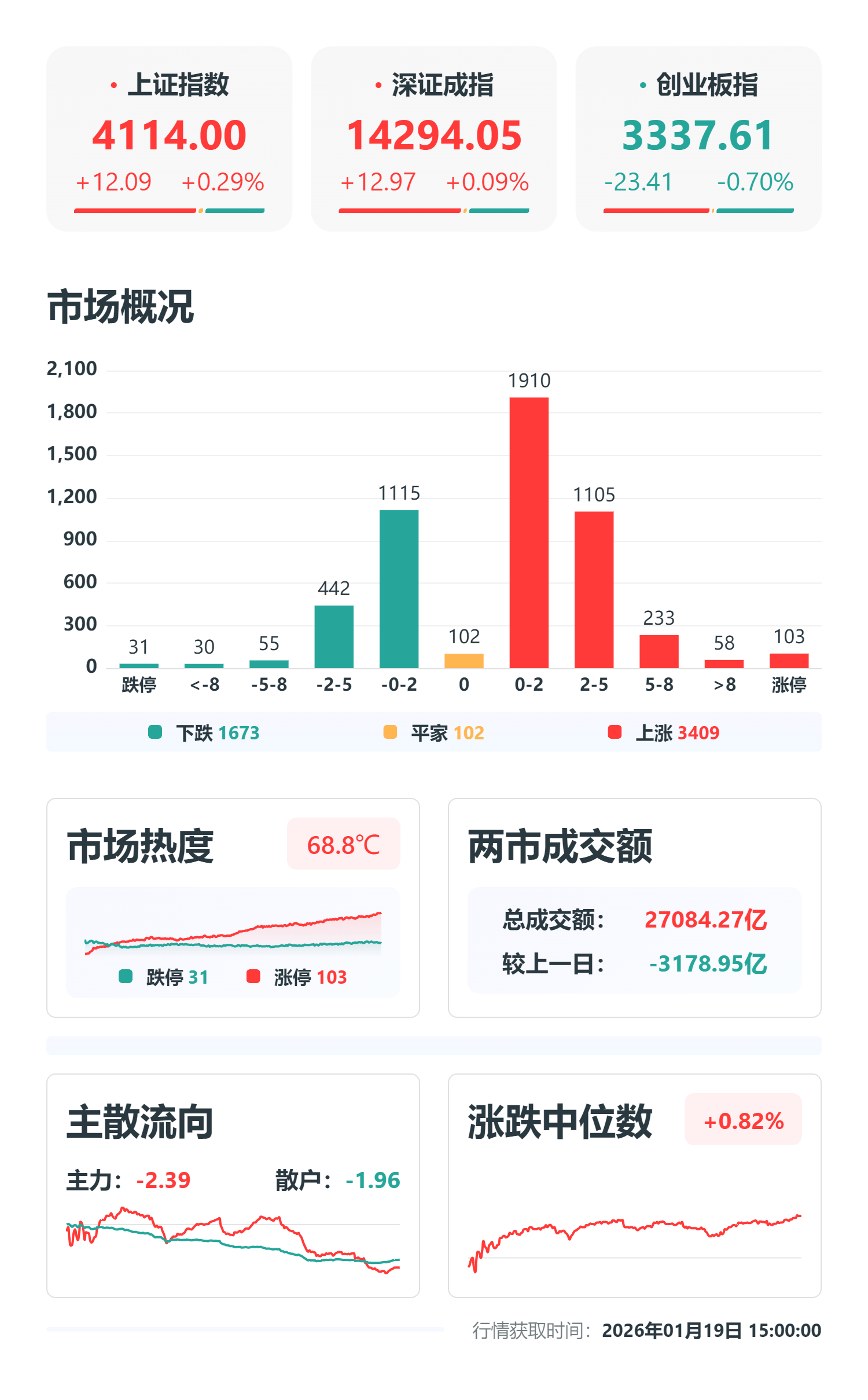 A股收评:沪指涨0.29%、创业板指跌0.7%,电网设备、机器人及贵金属板块走高,商业航天概念股活跃